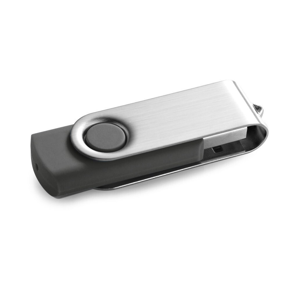 8 GB USB-stick met rubberen afwerking en metalen clip. Geleverd in een doos. Voor leveringen naar Nederland moet tevens de Thuiskopievergoeding van 0,40 Eur/stuk worden berekend