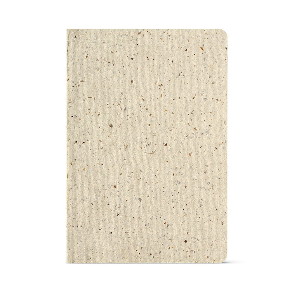 Voed je creativiteit met ons A5 notitieboek met een kaft van Beer Waste (25% bierafval en 75% katoenen vod). Elk van de 196 pagina's is gemaakt van gerecycled 80 grams papier en is gestippeld. Voorzien van een softcover en een schutblad met een uniek verhaal over het materiaal.