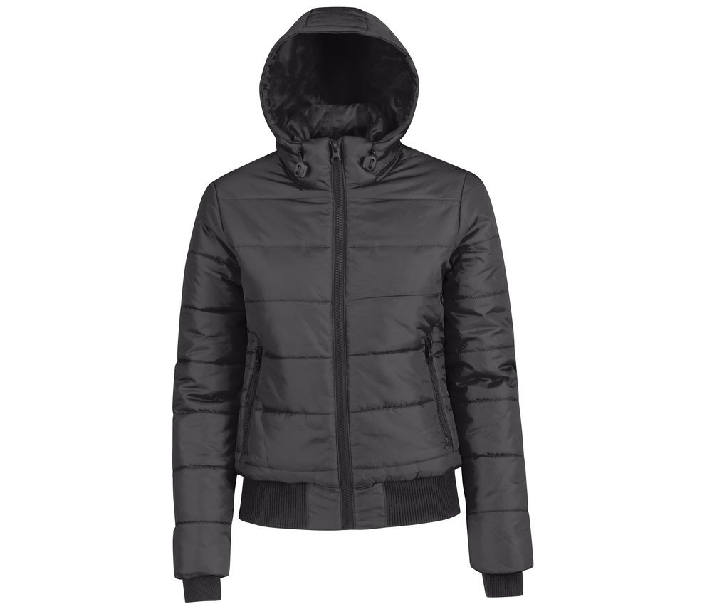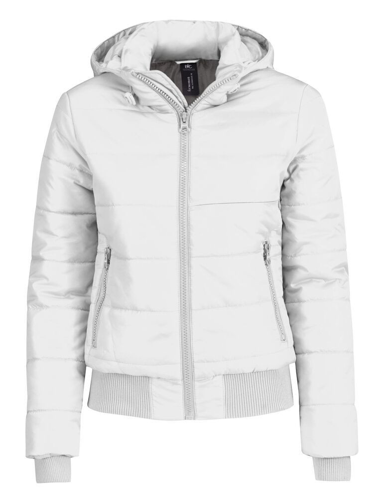 100% polyester / 100% polyester voering. Buitenstof met acrylcoating, bestand tegen regen, ademend en winddicht. Staande kraag. Weerbestendige binnenbeen. Rib aan boorden en zoom. Linkerborst en rug met gemakkelijke toegang voor decoratie. 2 zakken aan de voorkant met Éclair®-sluiting. 1 binnenzak voor de portemonnee. Verstelbare en afneembare gewatteerde capuchon.