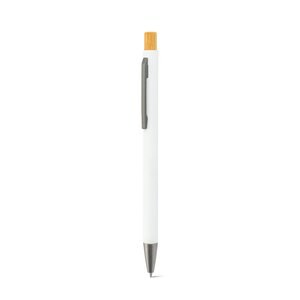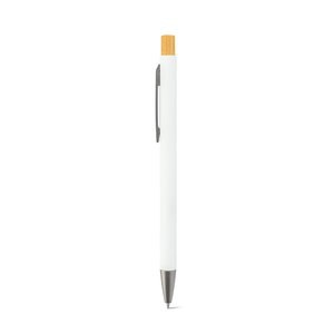 Recyclede aluminium balpen (100% RAL) met rubberen afwerking. Het minimalistische ontwerp combineert matte metallic grijze details met een bamboe knop aan de bovenkant. De pen heeft een clip en schrijft met blauwe inkt. Bij lasergravure wordt de personalisatiekleur zilver. Vanwege het natuurlijke materiaal kunnen de kleur van het product en het drukresultaat per product afwijken. ø9 x 135 mm