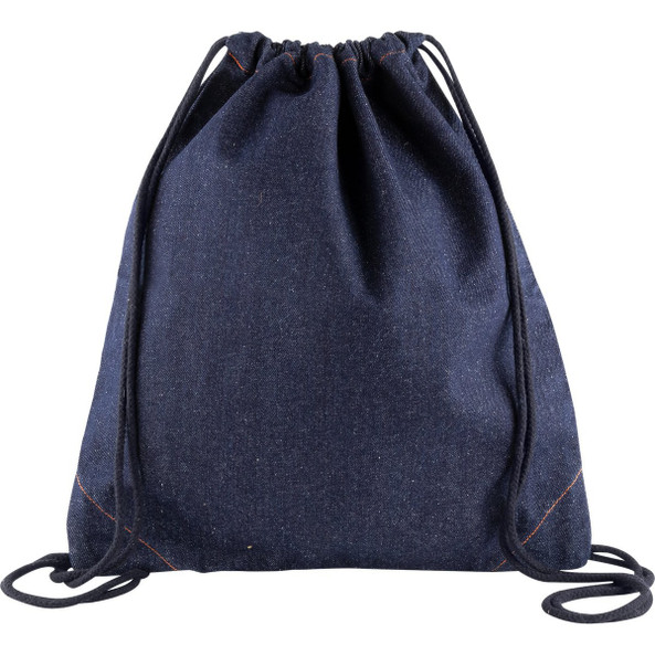 Backpack made of recycled cotton and denim, 250 g/m², with drawstring closure.