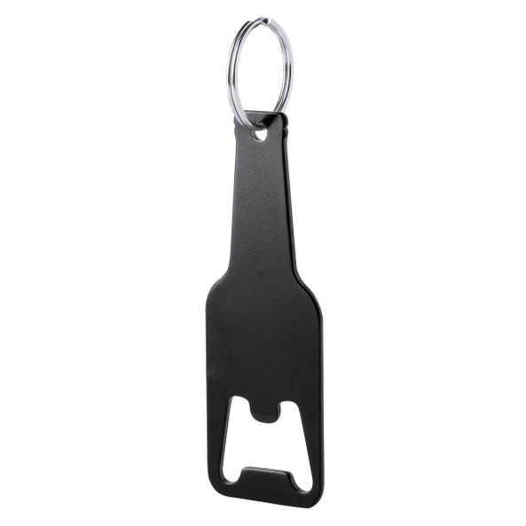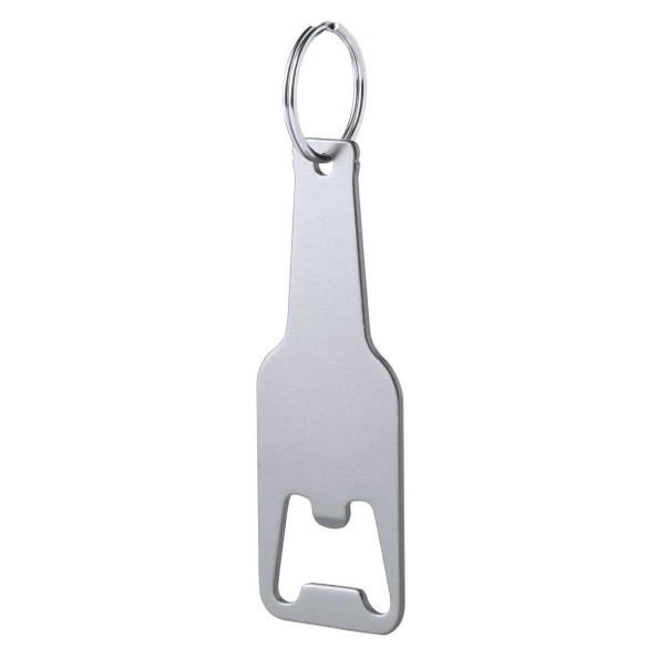 Bottle-shaped bottle opener keychain, available in various colors. Especially suitable for laser engraving.