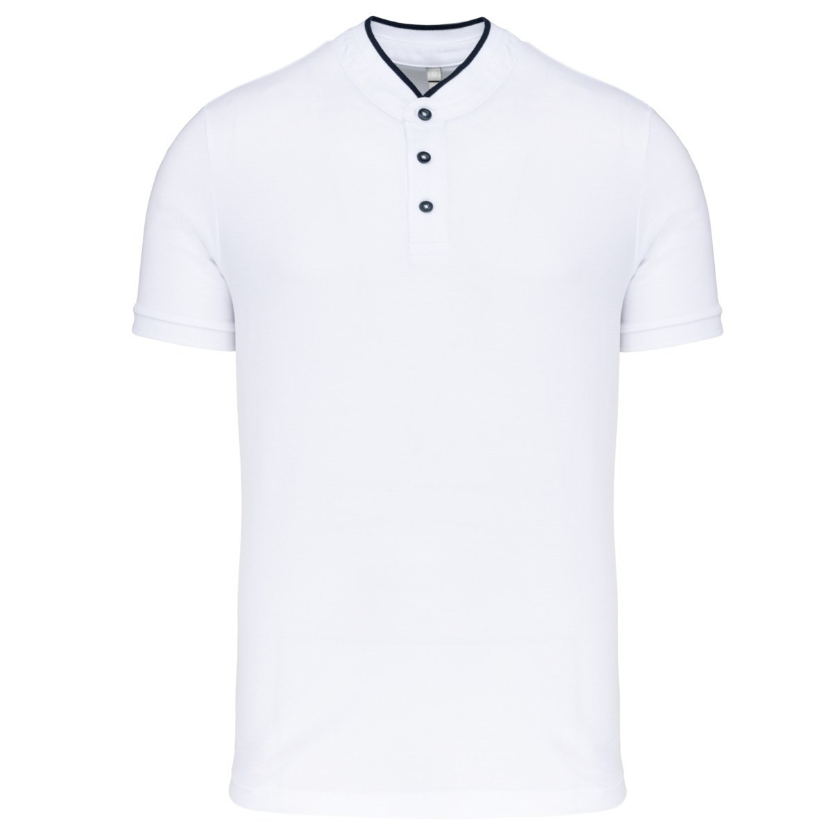 Wasbaar op 60 °C (40 °C voor chiné kleur) Kraag in maostijl in ribboord met contrasterende bies.
