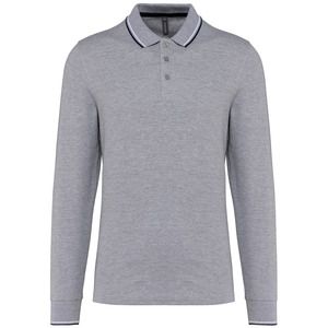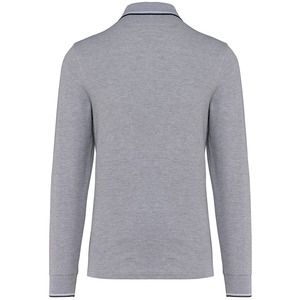 Afwerking ribboord 1x1 met contrasterende biezen aan kraag en mouwuiteinden.