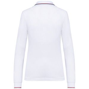 Afwerking ribboord 1x1 met contrasterende biezen aan kraag en mouwuiteinden.