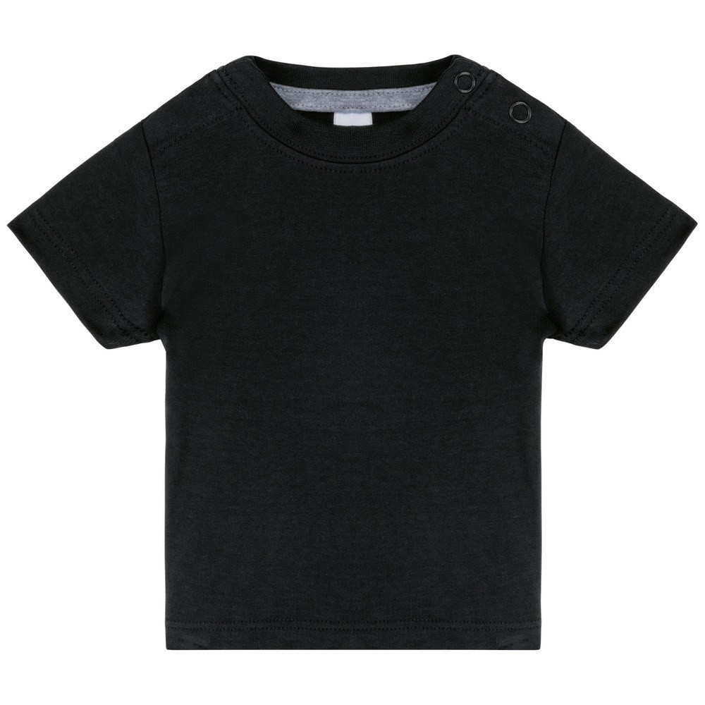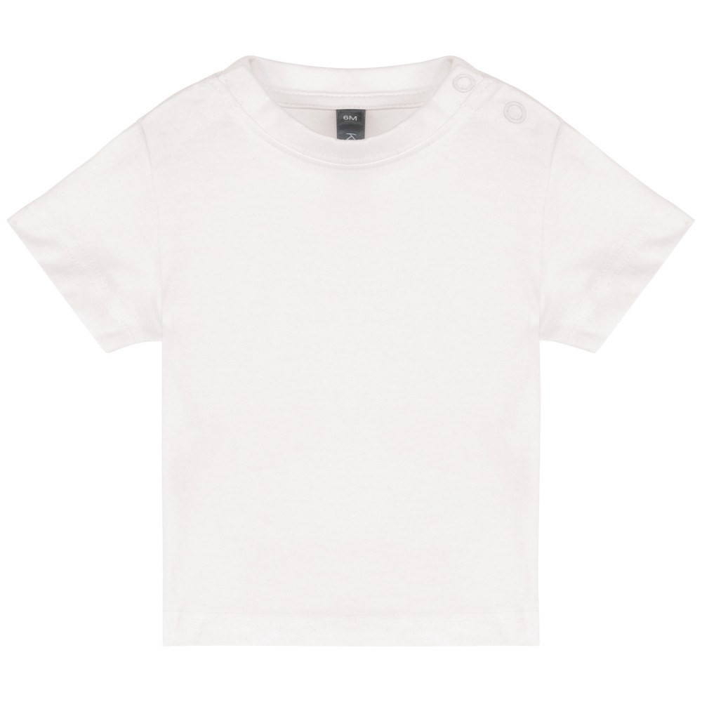 Ronde hals met 2 drukknopen ter hoogte van de schouder.