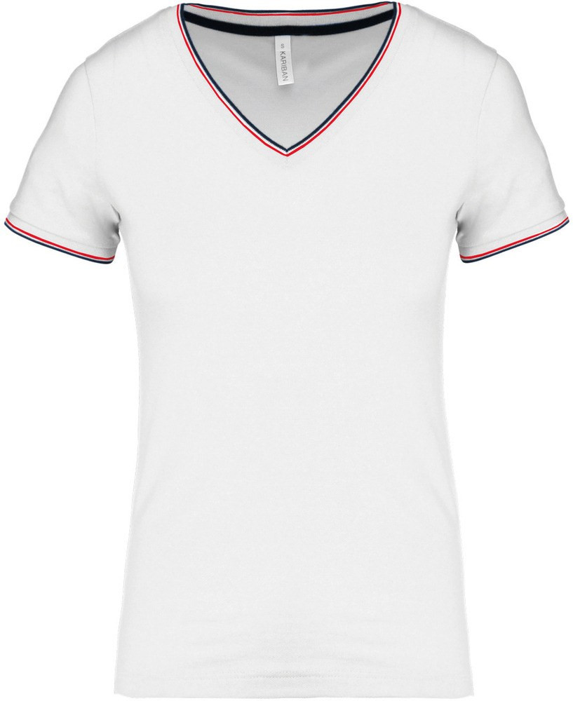 Ribboord met contrasterende strepen aan de kraag en mouwuiteinden.