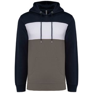 Kariban K4016 - Marine / Wit / Basaltgrijs - Driekleurige unisex sweater met capuchon