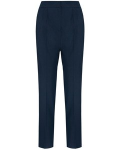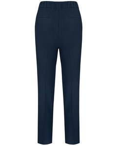 Binnenste tailleband afwerking in hoofdmateriaal met toon op toon bies.