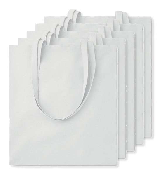 Pak van 5 GiftRetail MO9268 - Wit - COTTONEL COLOUR + Katoenen boodschappentas