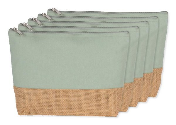 Pak van 5 Kimood KI0276 - Salie / Natuurlijk - Zakje van katoencanvas en jute
