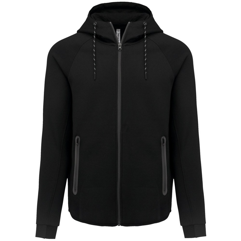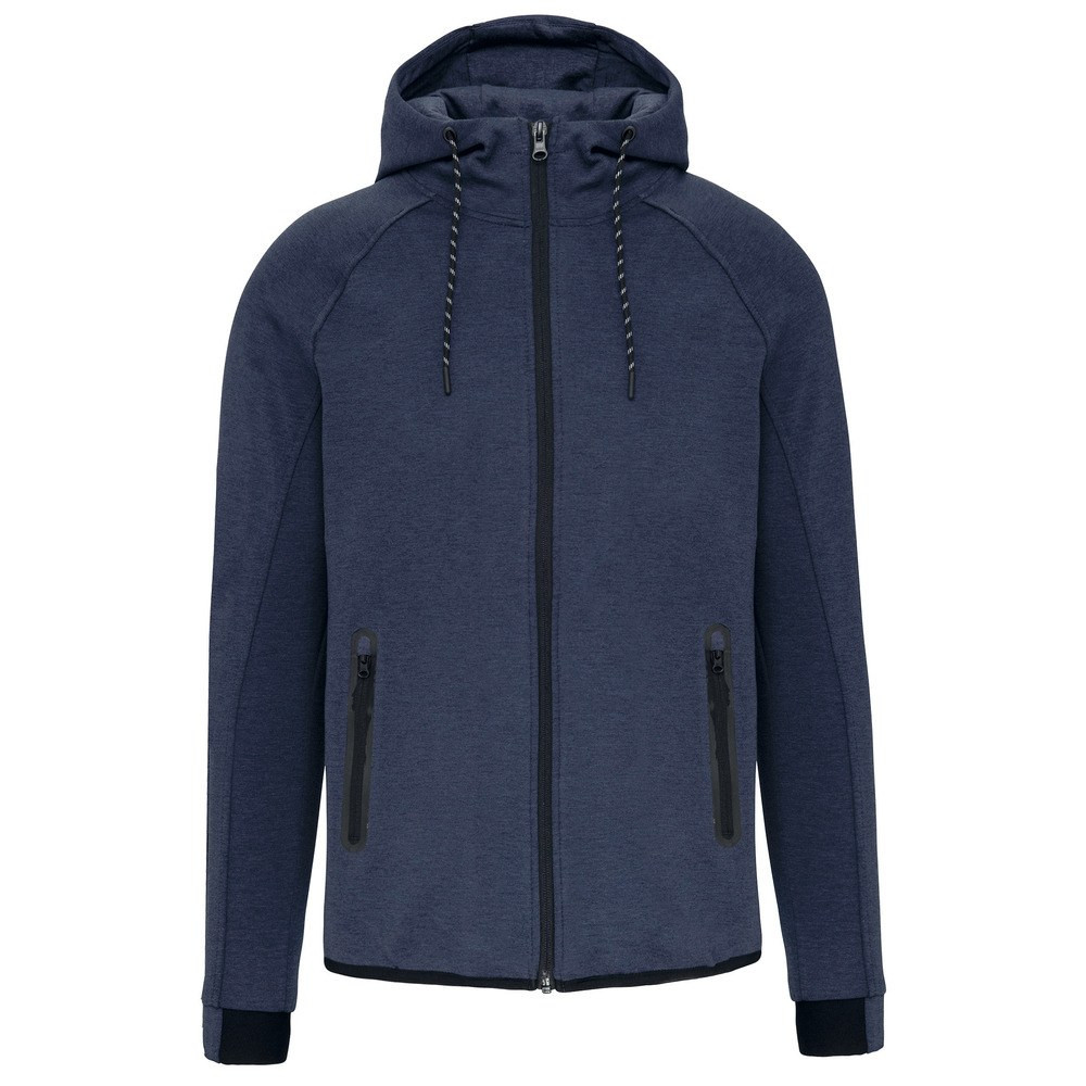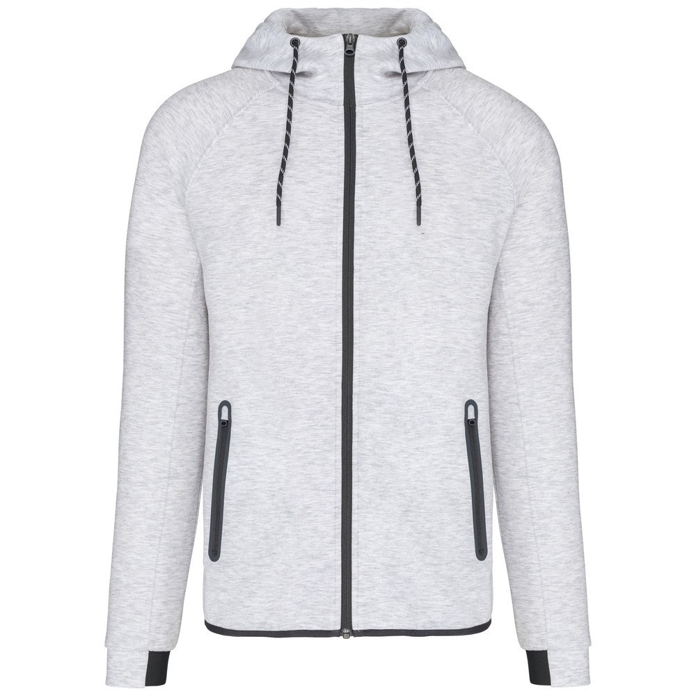 Capuchon met voering van 65% polyester / 35% katoenen jersey en tweekleurig trekkoord met plastic uiteinden.