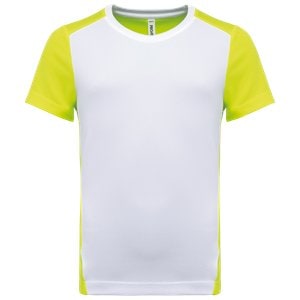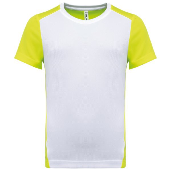 Proact PA4016 - Wit / Fluorescerend Geel - Ecologisch sport-T-shirt in twee kleuren voor kinderen