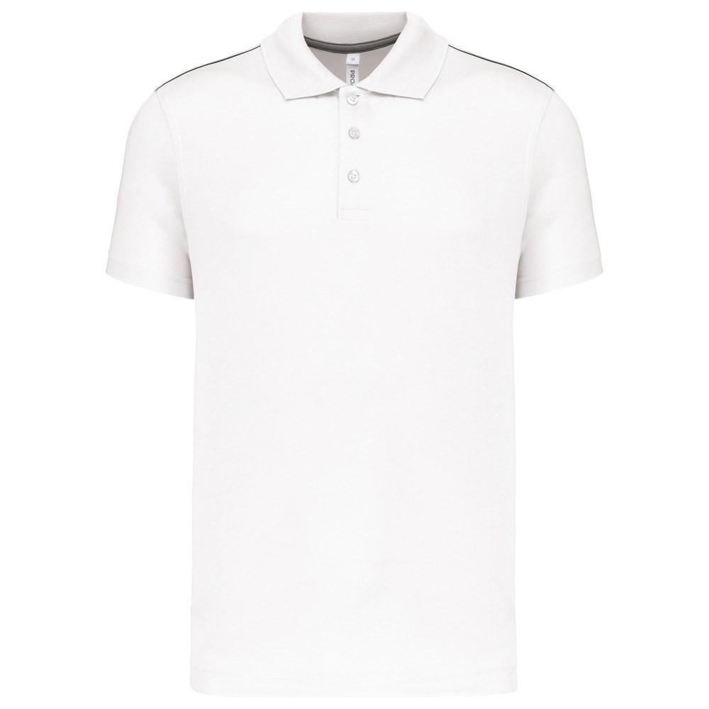 Afwerking met dubbele stiksels aan de mouwuiteinden en onderaan.