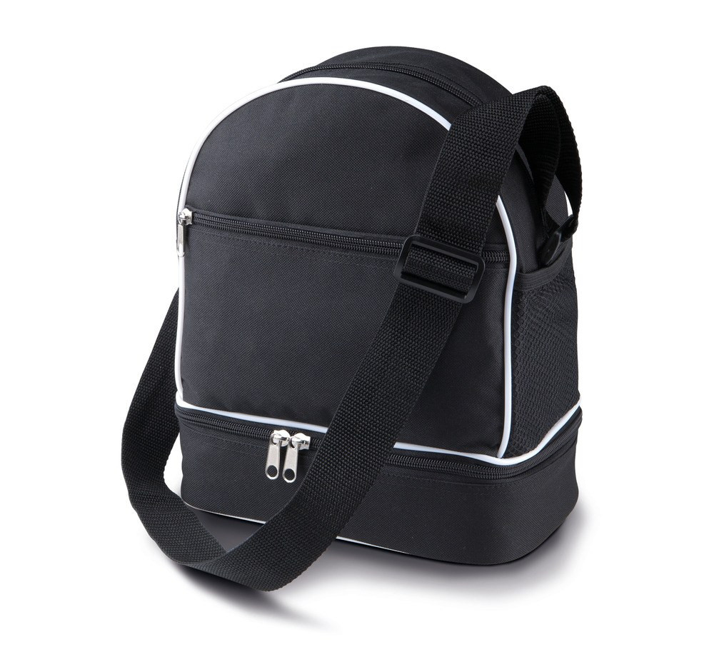 Compartiment met schuim en met ruimte voor 3 ballen, groot voorvak met ritssluiting, verstelbare schouderband.