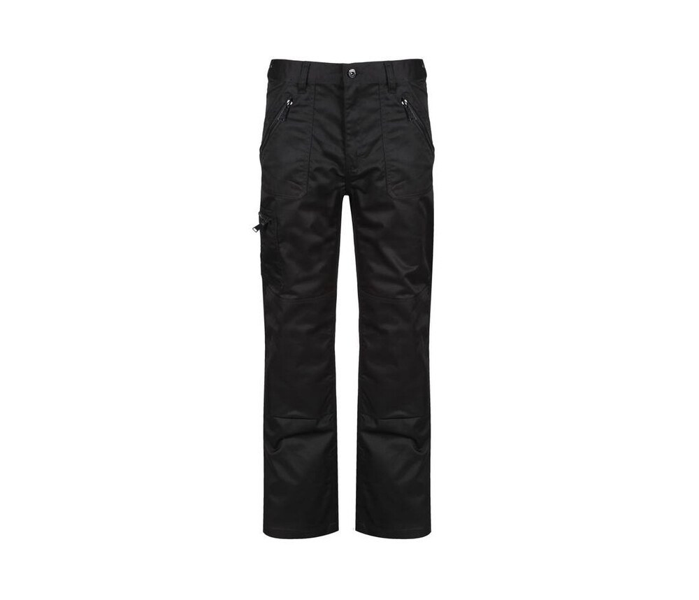 Duurzaam en waterafstotend. Gedeeltelijk elastische taille. Kniezakken. Riemlussen. Knoop- en gulpsluiting. 2 voorzakken en 1 muntzakje. Voorzak met rits. 2 achterzakken. Zijzak met rits. Versterkte kruisnaden. Drievoudig gestikte naden.