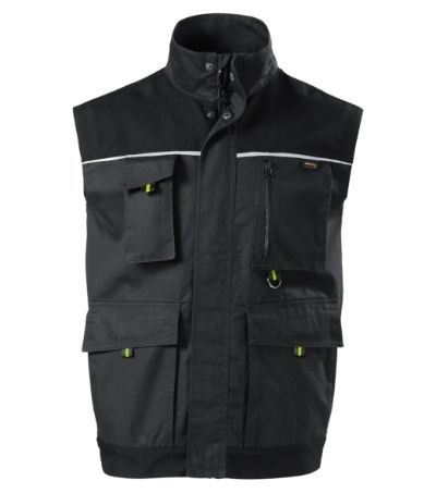 Het is uitgerust met retro-reflecterende elementen zodat je op elk moment zichtbaar blijft voor auto's of machines op de bouwplaats. Het is gemaakt van een zeer resistent materiaal (CORDURA®) en heeft een dubbele naad. Met dit soort ontwerp keuze, zul je geen moeite hebben om hem jarenlang in goede staat te houden. De volledige rits is gegoten en heeft een kinbescherming en een klep. Dit artikel heeft 6 multifunctionele zakken, sommige zijn voorzien van flappen en andere van een ritssluiting. De onderzoom is verstelbaar met drukknopen aan de zijkanten. Dankzij de metalen D-ring en de karabijnhaak kun je je sleutels, badge of ID-kaart eenvoudig bevestigen. De tweekleurige stijl is discreet en voegt een echt pluspunt toe aan de esthetiek.
