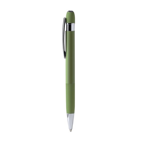 Stamina BL1816 - Saliegroen - ENDRIK Pen met gerecyclede aluminium behuizing met gestreepte greep en gematteerde rubberen afwerking