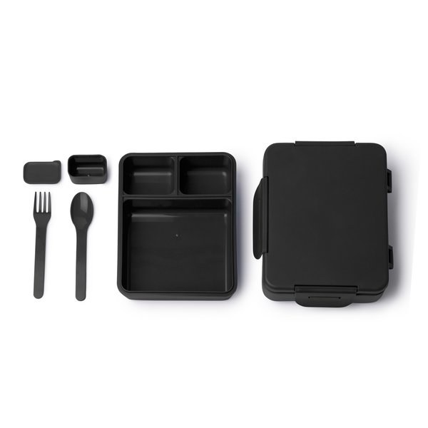 Bovendien maken deze compartimenten deel uit van een uitneembaar hoofdcompartiment, waardoor er onderin ruimte overblijft voor het opbergen van de meegeleverde vork en lepel.