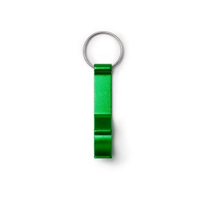Tao fles- en blikopener van RCS gerecycled aluminium met sleutelhanger
