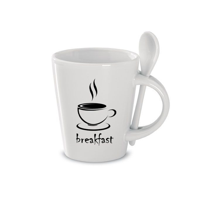 Keramische koffiemok met bijpassende lepel.