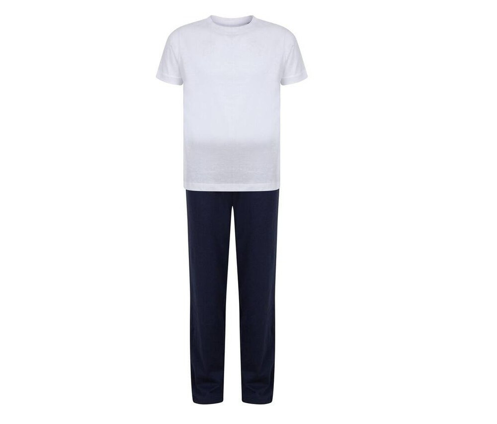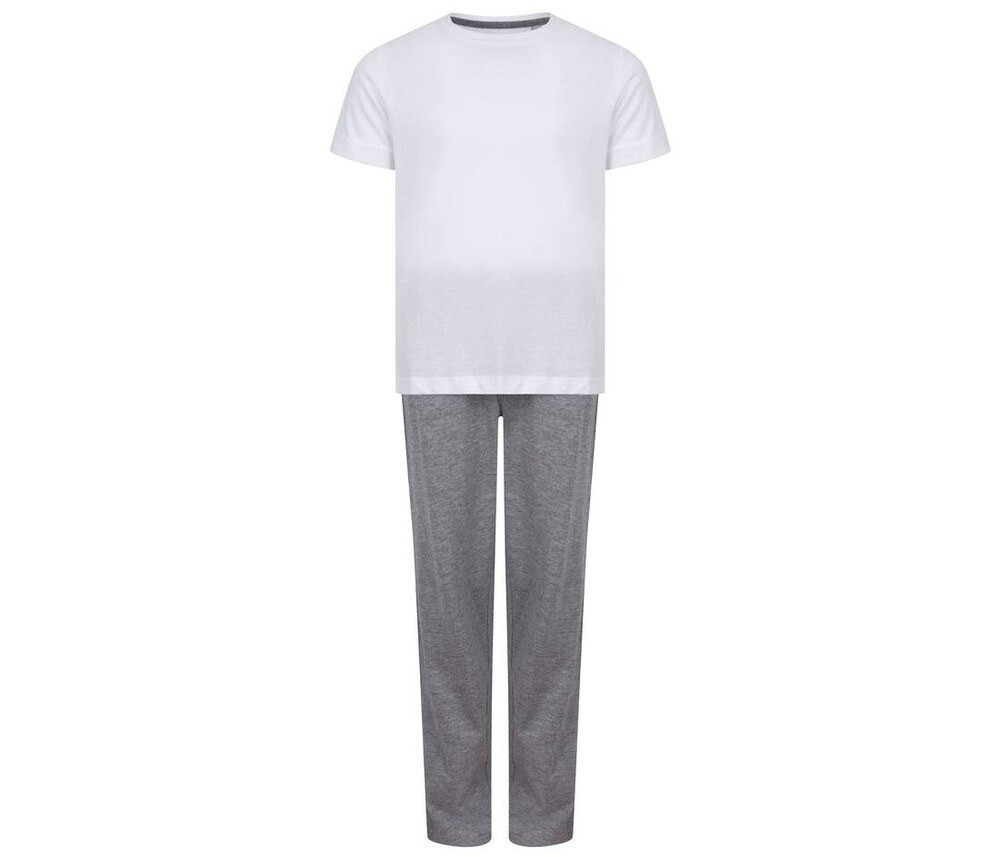 De set is gemaakt van katoenen jersey, een kwaliteitsmateriaal dat een zachte touch en optimaal comfort garandeert. Voor een maximale weerstand heeft de maat van het t-shirt een dubbele naad. De taille van de broek is elastisch, met een trekkoord, voor een betere pasvorm.