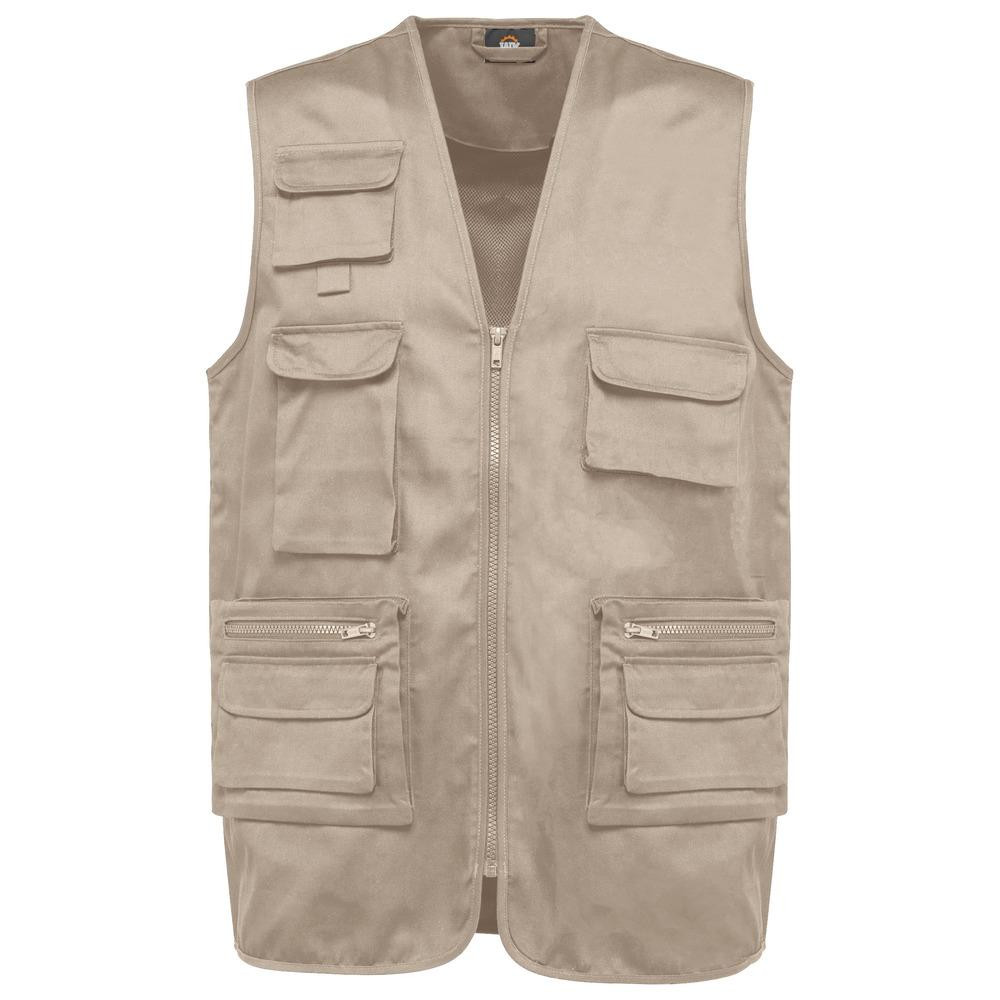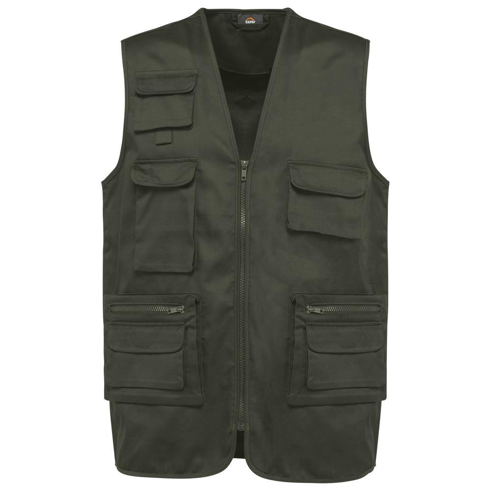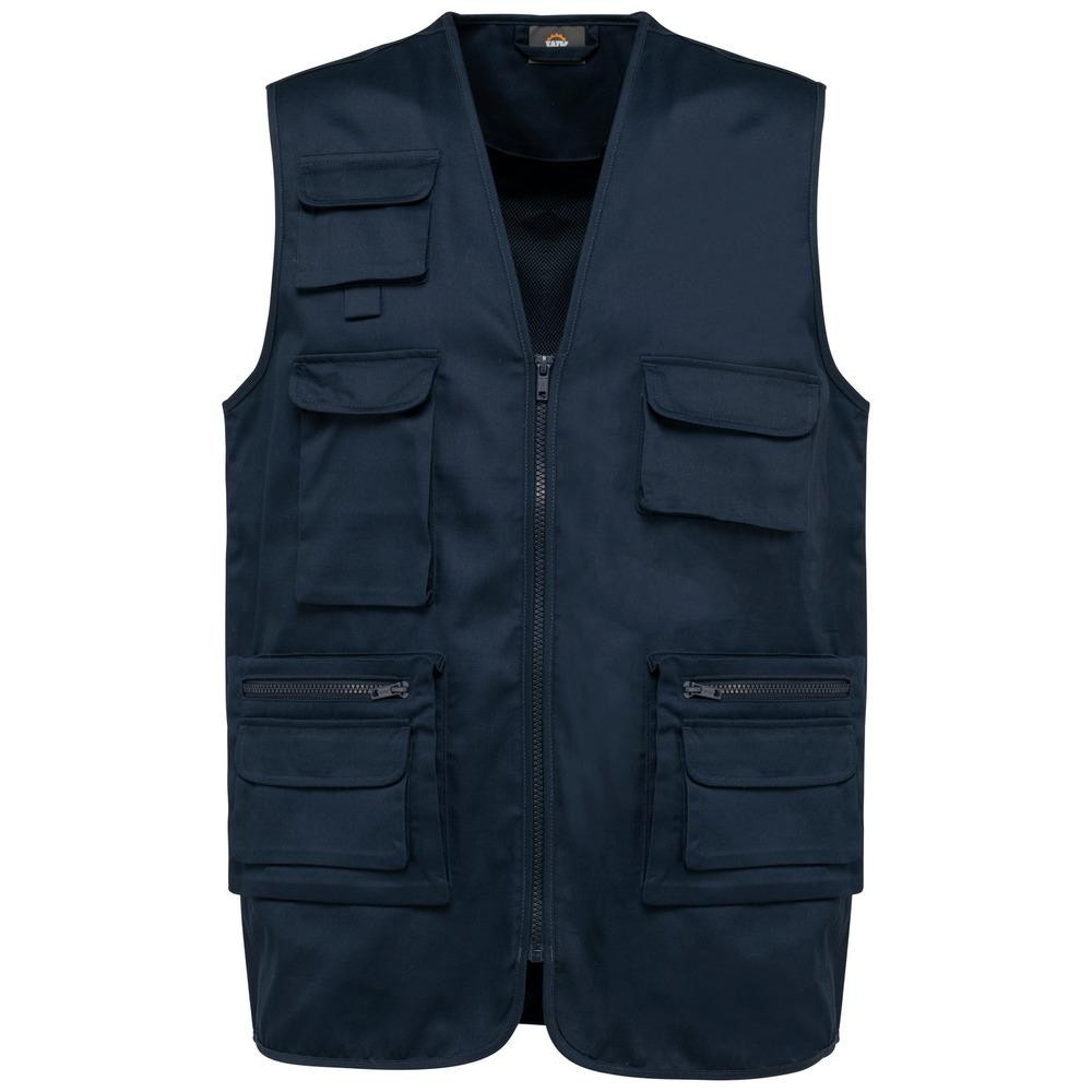 2 dubbele opgezette zakken met plooi vooraan, waarvan 1 met klep en 1 met ton-sur-ton plastic rits + 3 opgezette zakken met plooi en klep met klittenbandsluiting in verschillende formaten.