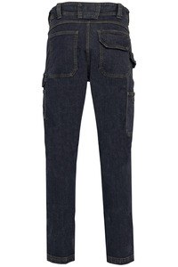 Driedubbele stiksels aan zijkanten, binnenkant been en kruis achteraan.